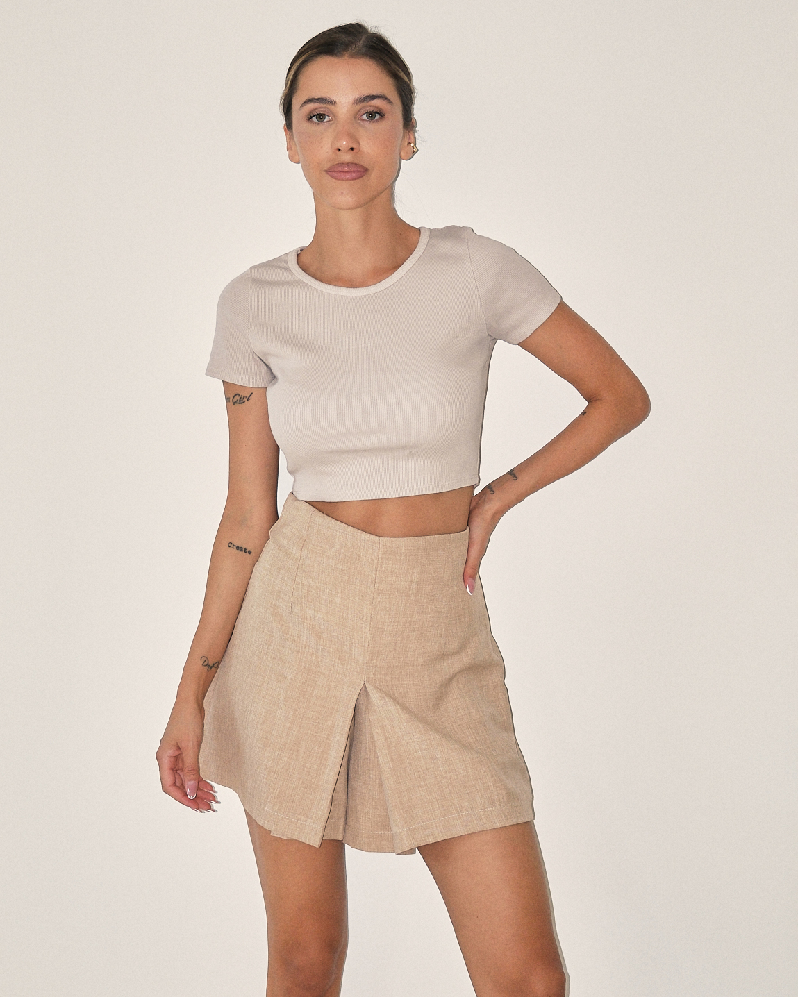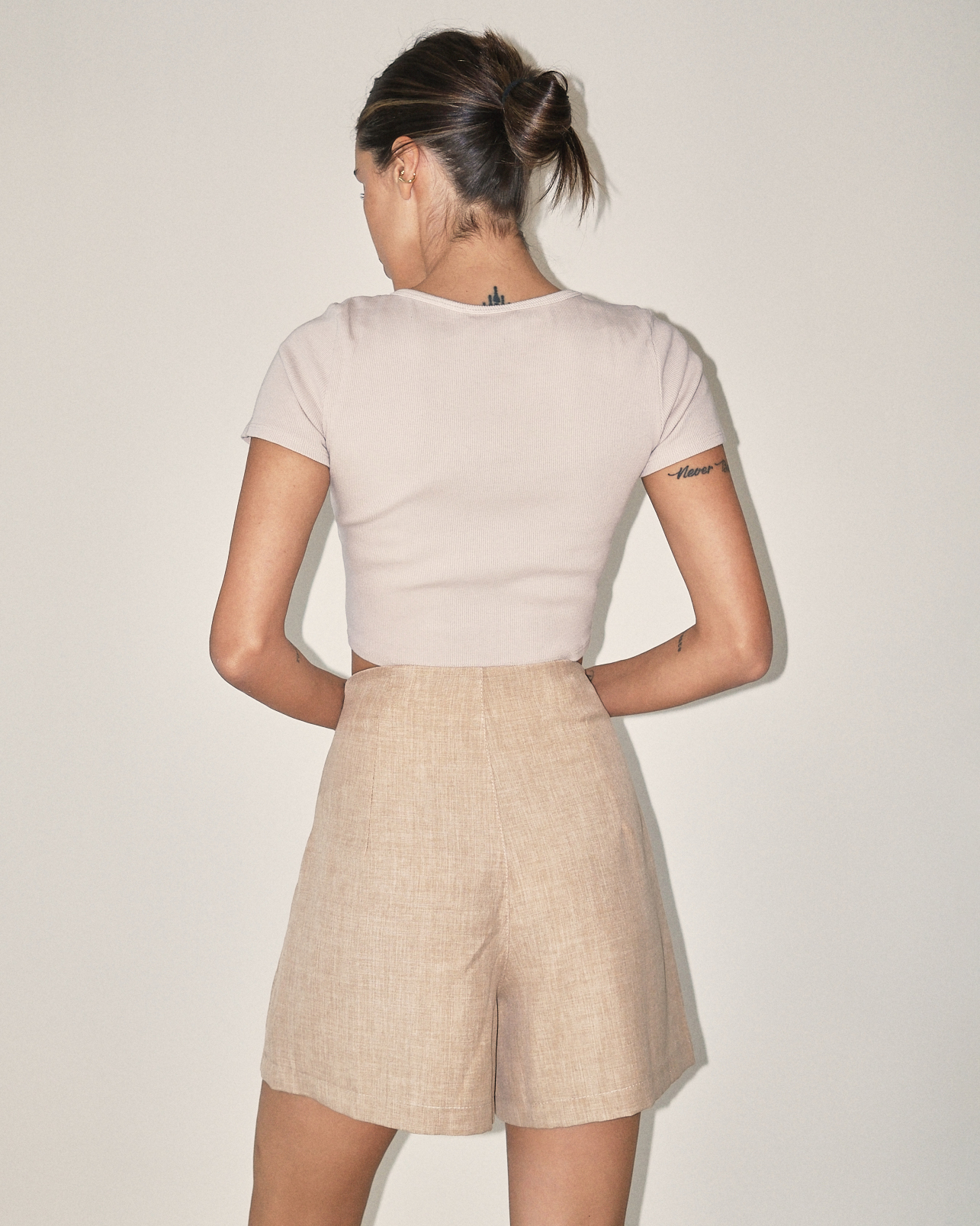 Short a vita alta effetto lino con pieghe e zip laterale.