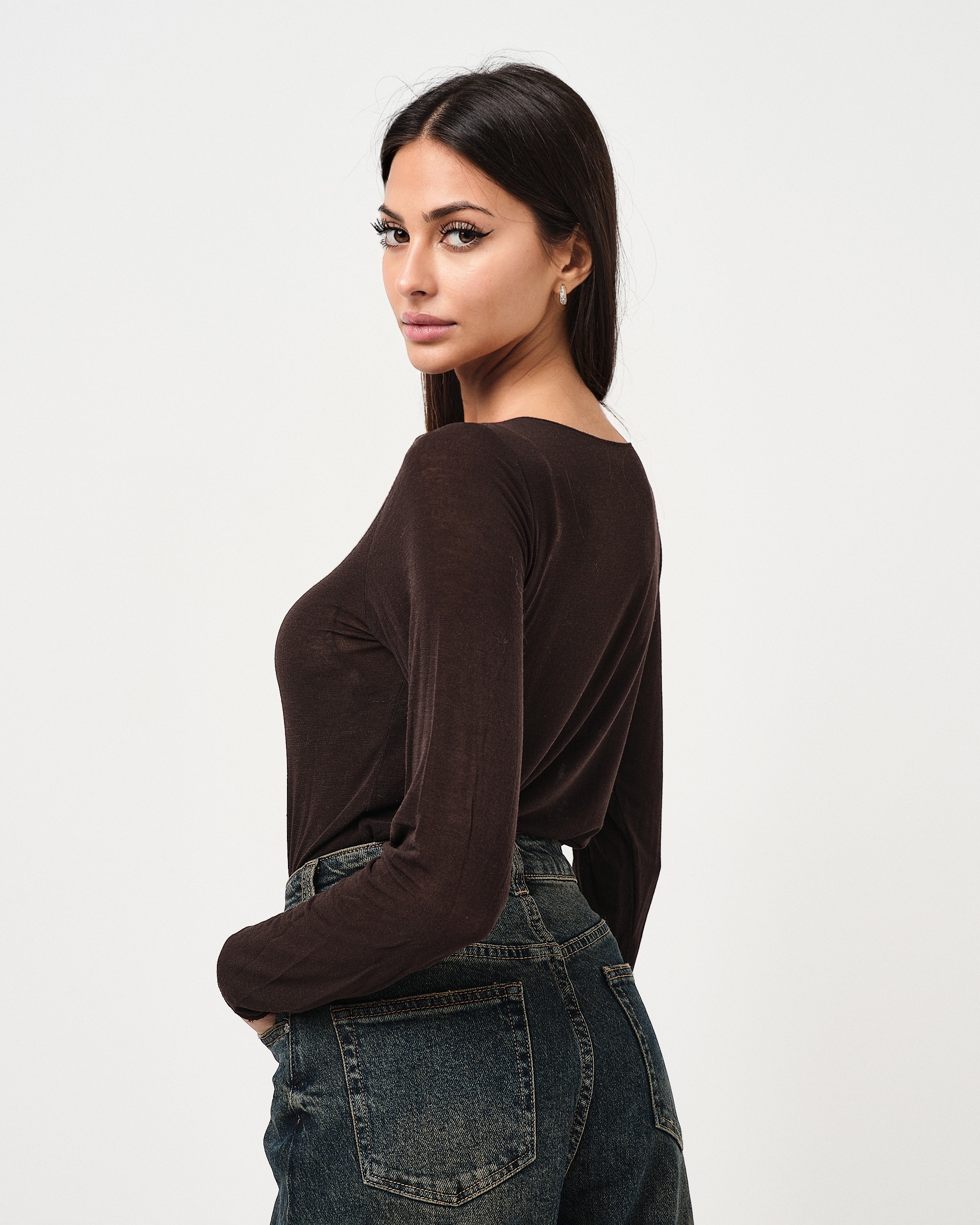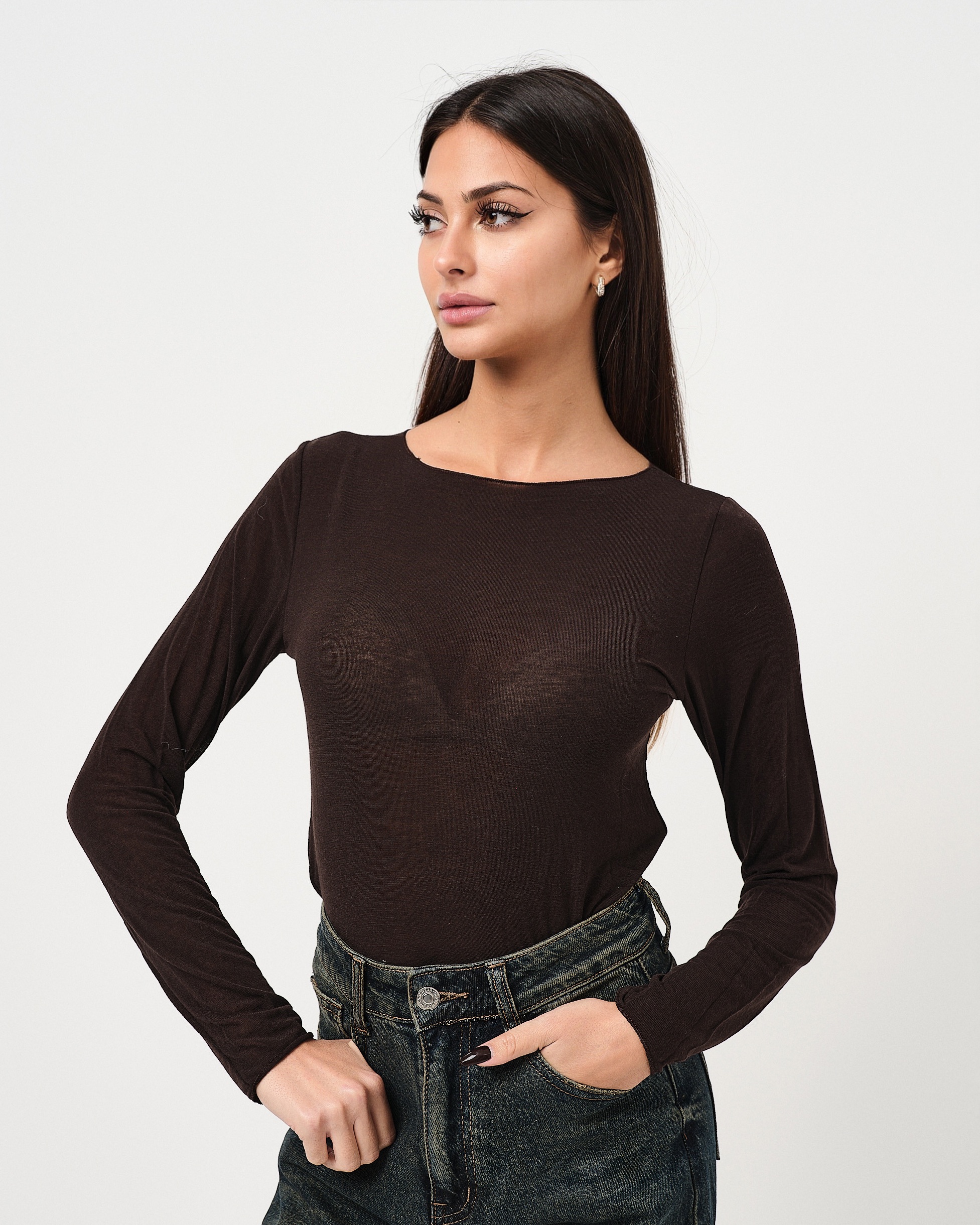 Maglia a maniche lunghe aderente semi trasparente in misto cashmere.