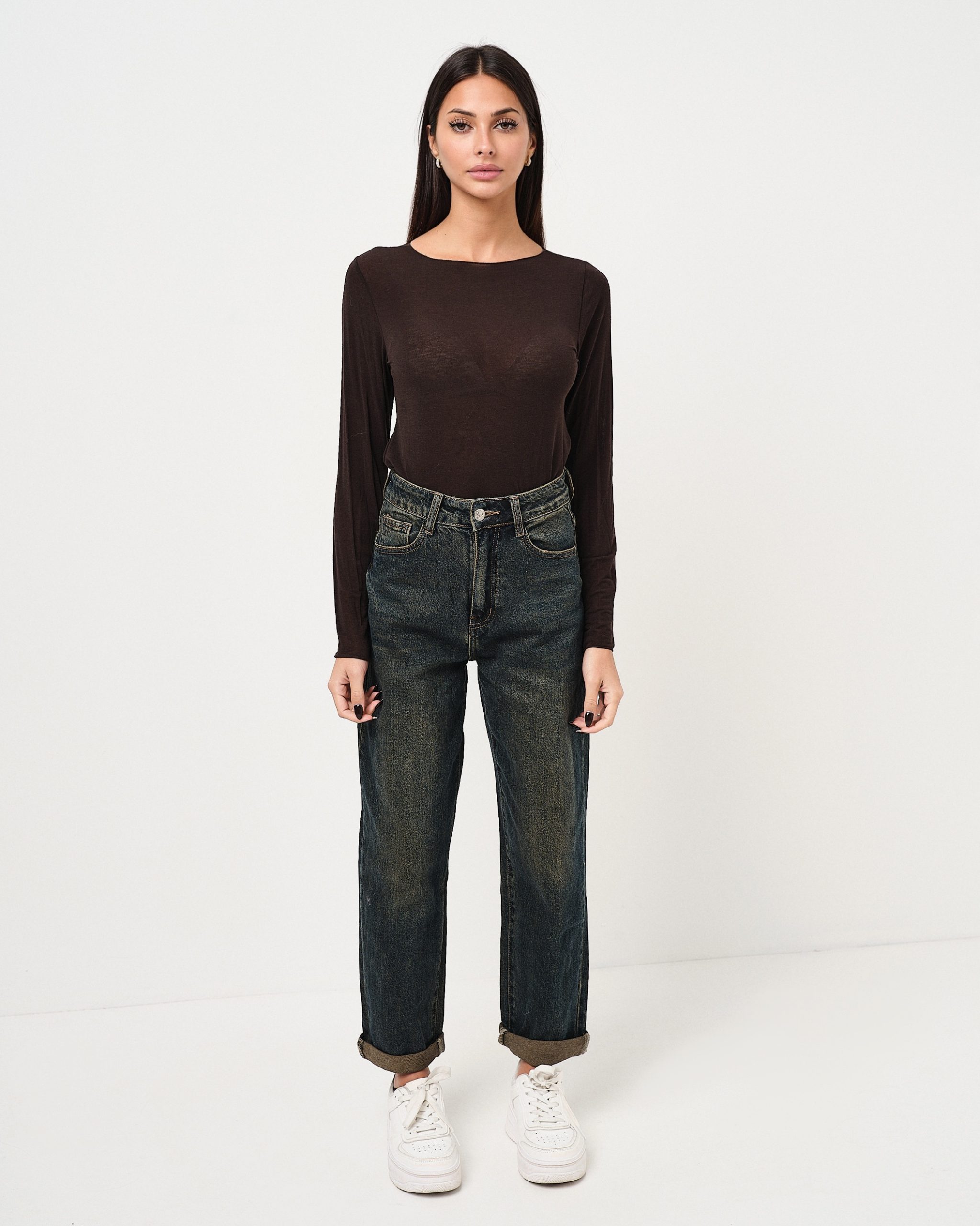 La modella è alta 1,63m e indossa la taglia UNI.