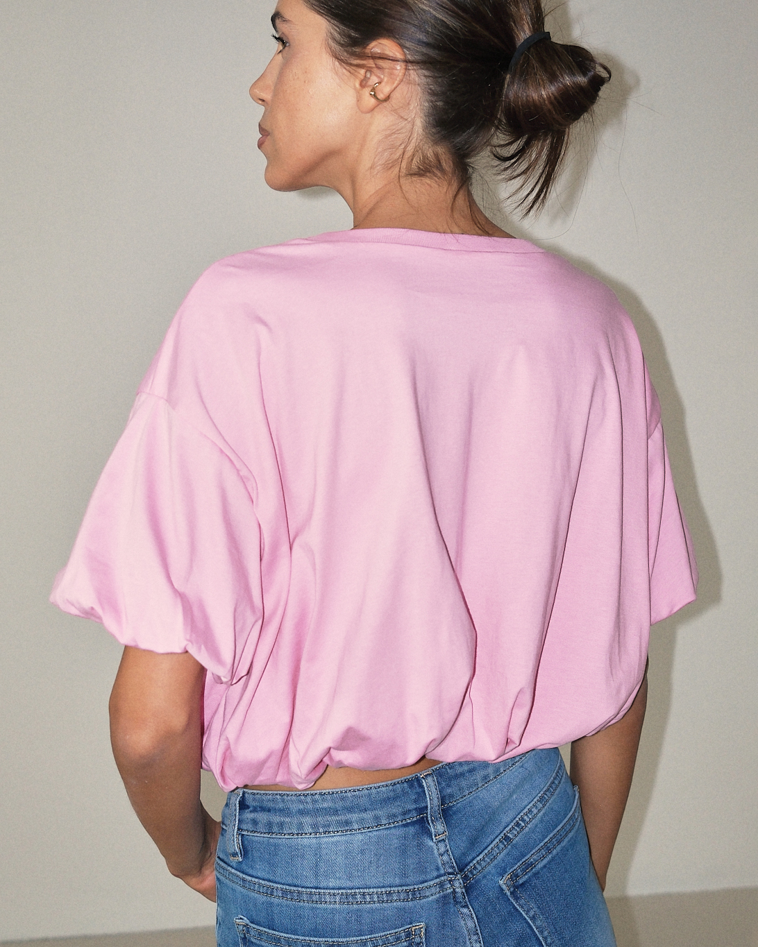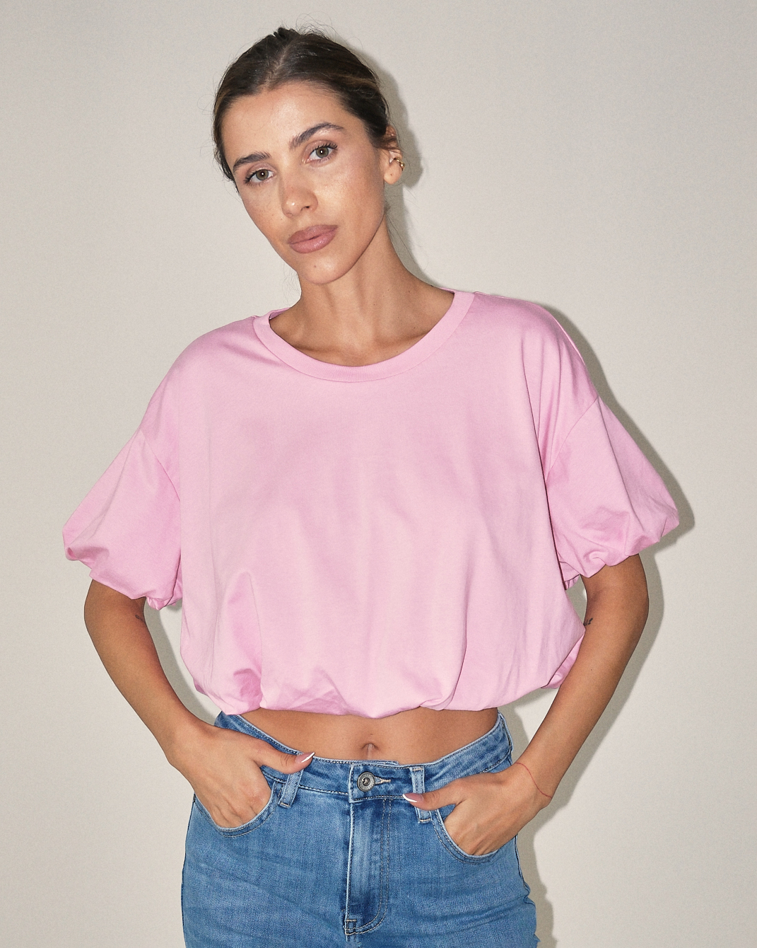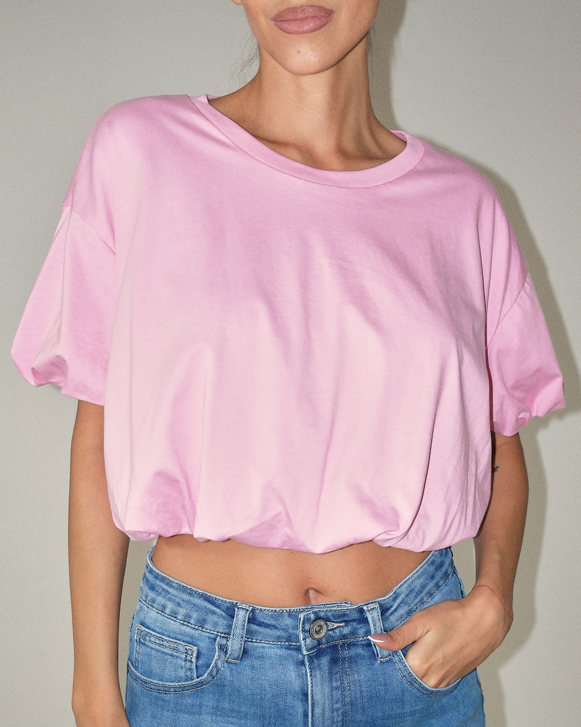 T-shirt cropped con fondo arricciato