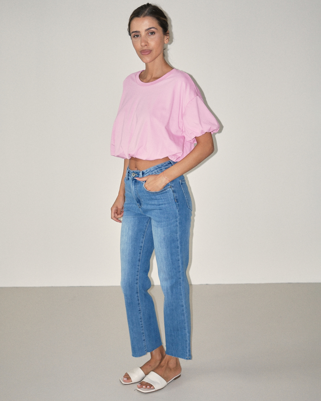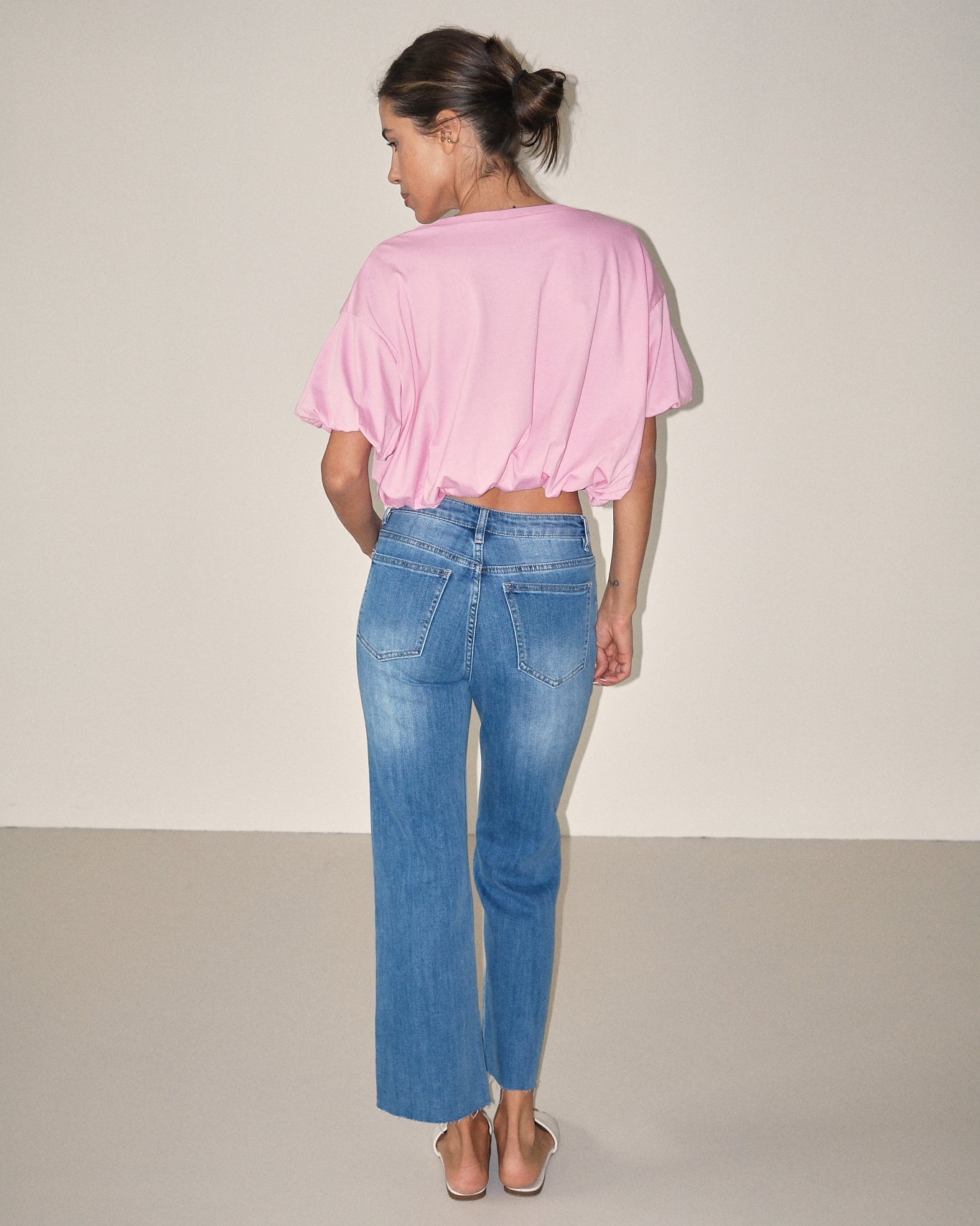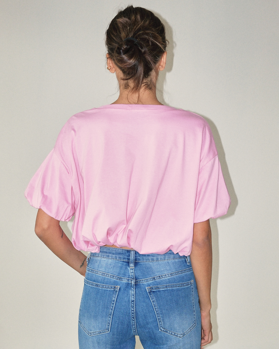 T-shirt cropped con fondo arricciato