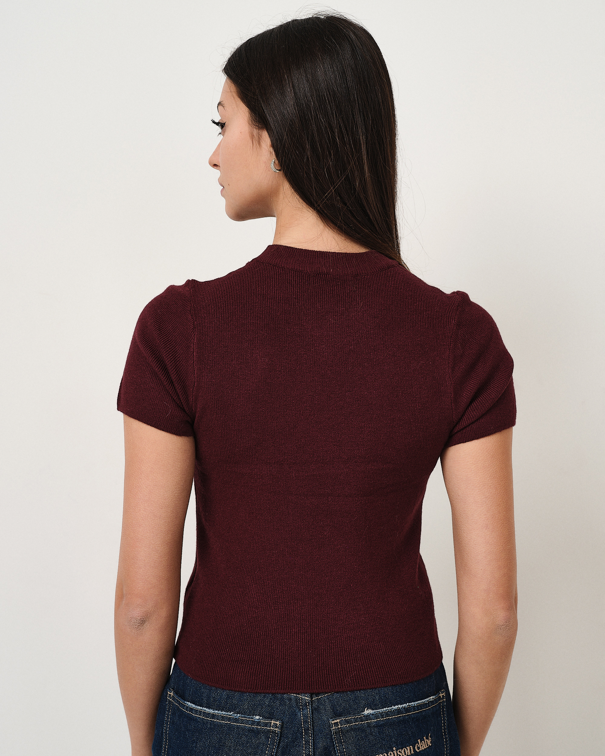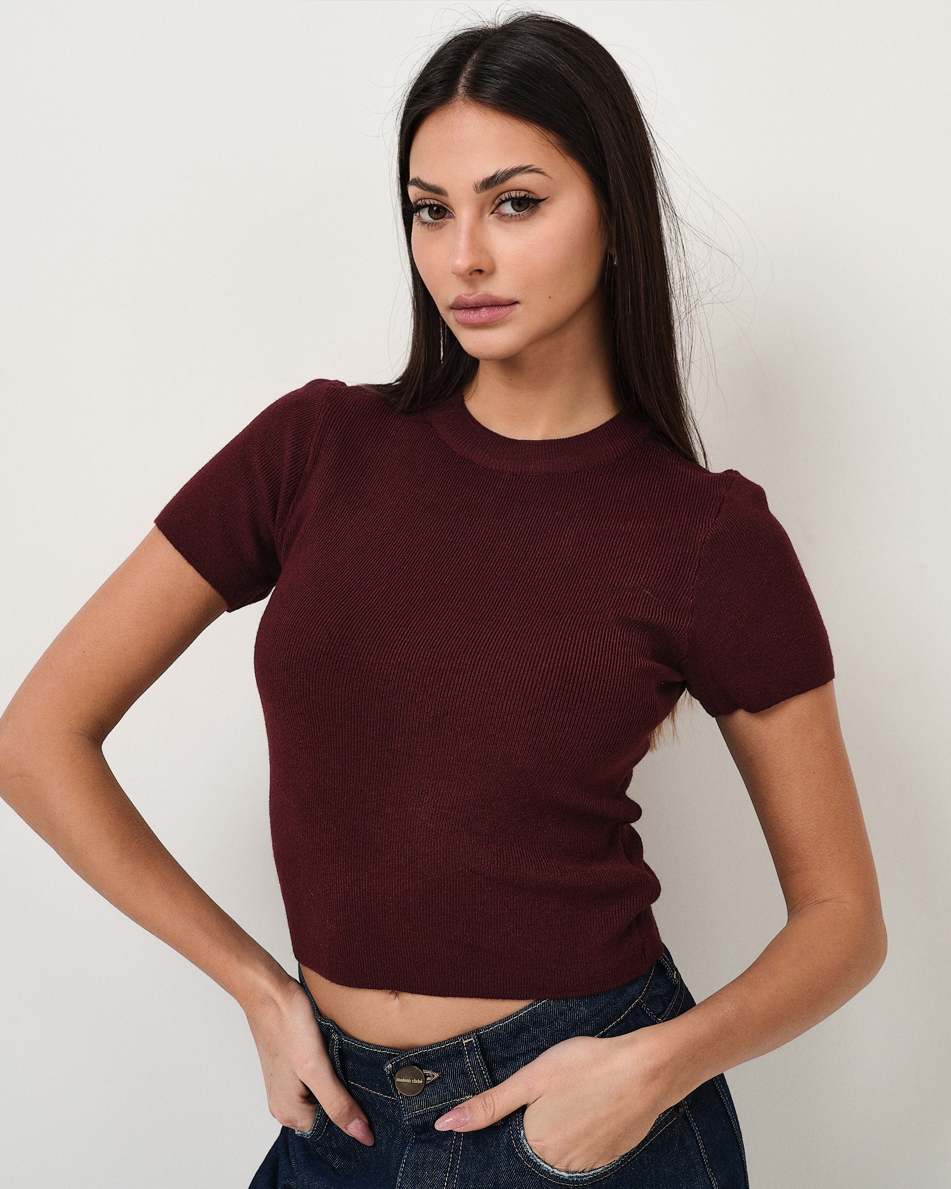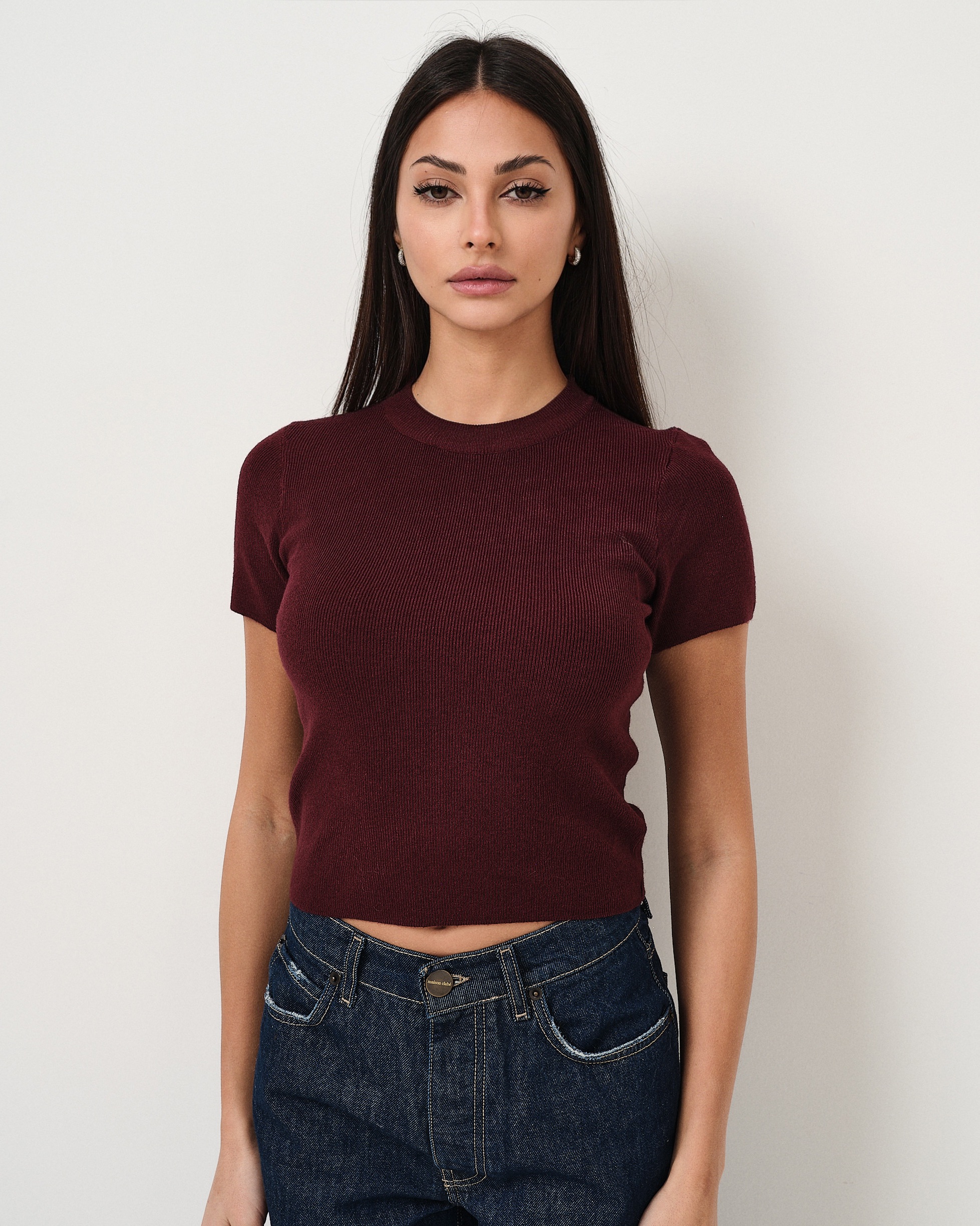 T-shirt basic elasticizzata in maglia vestibilità cropped.