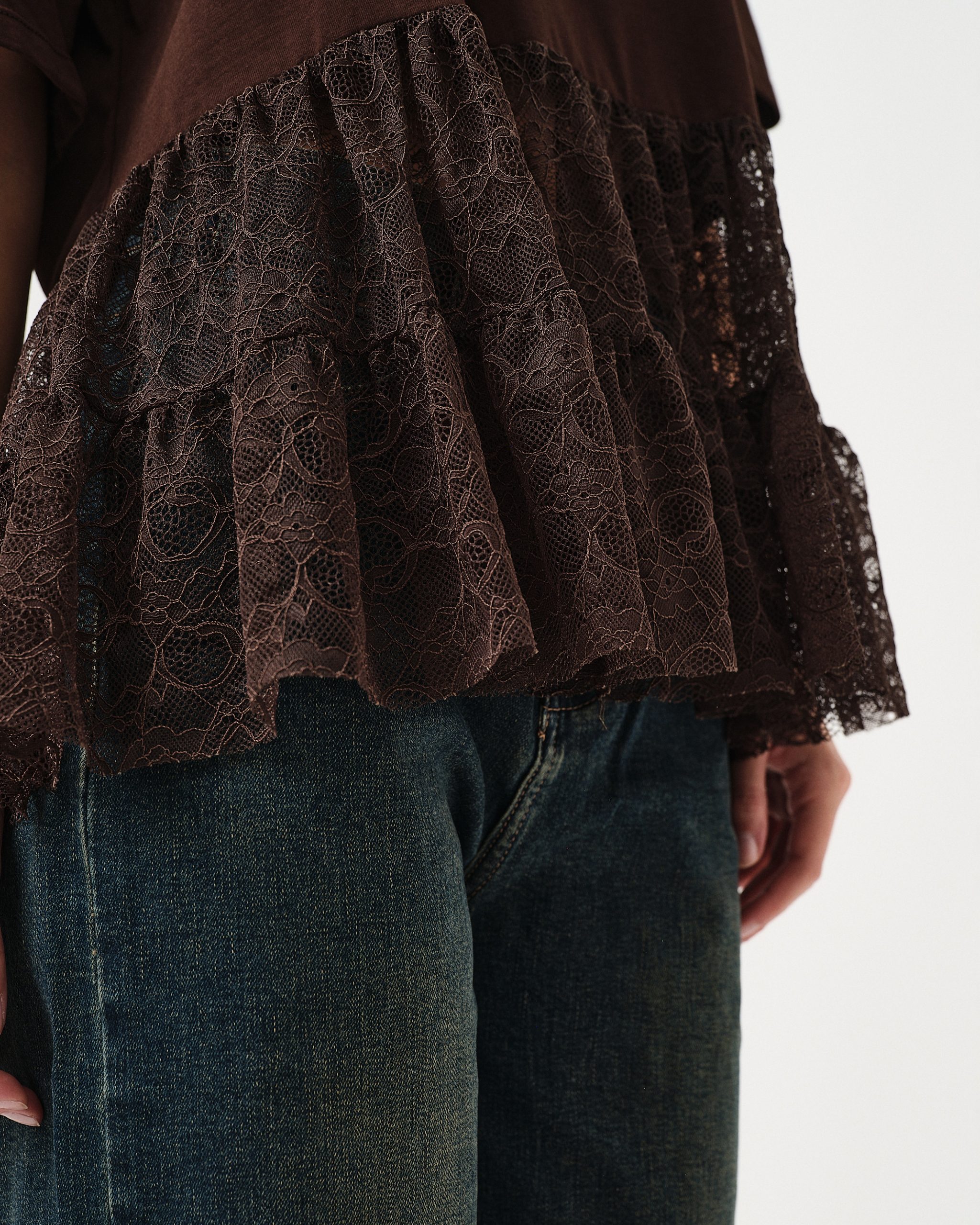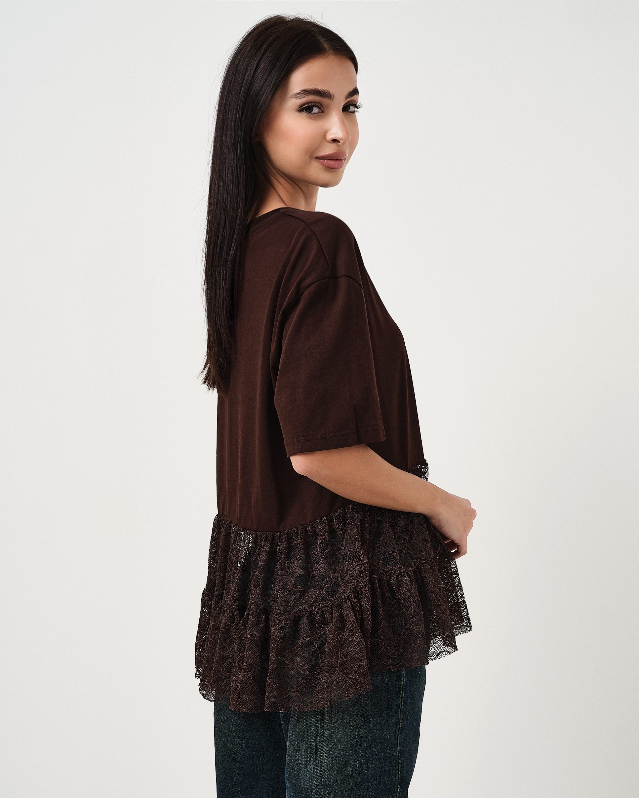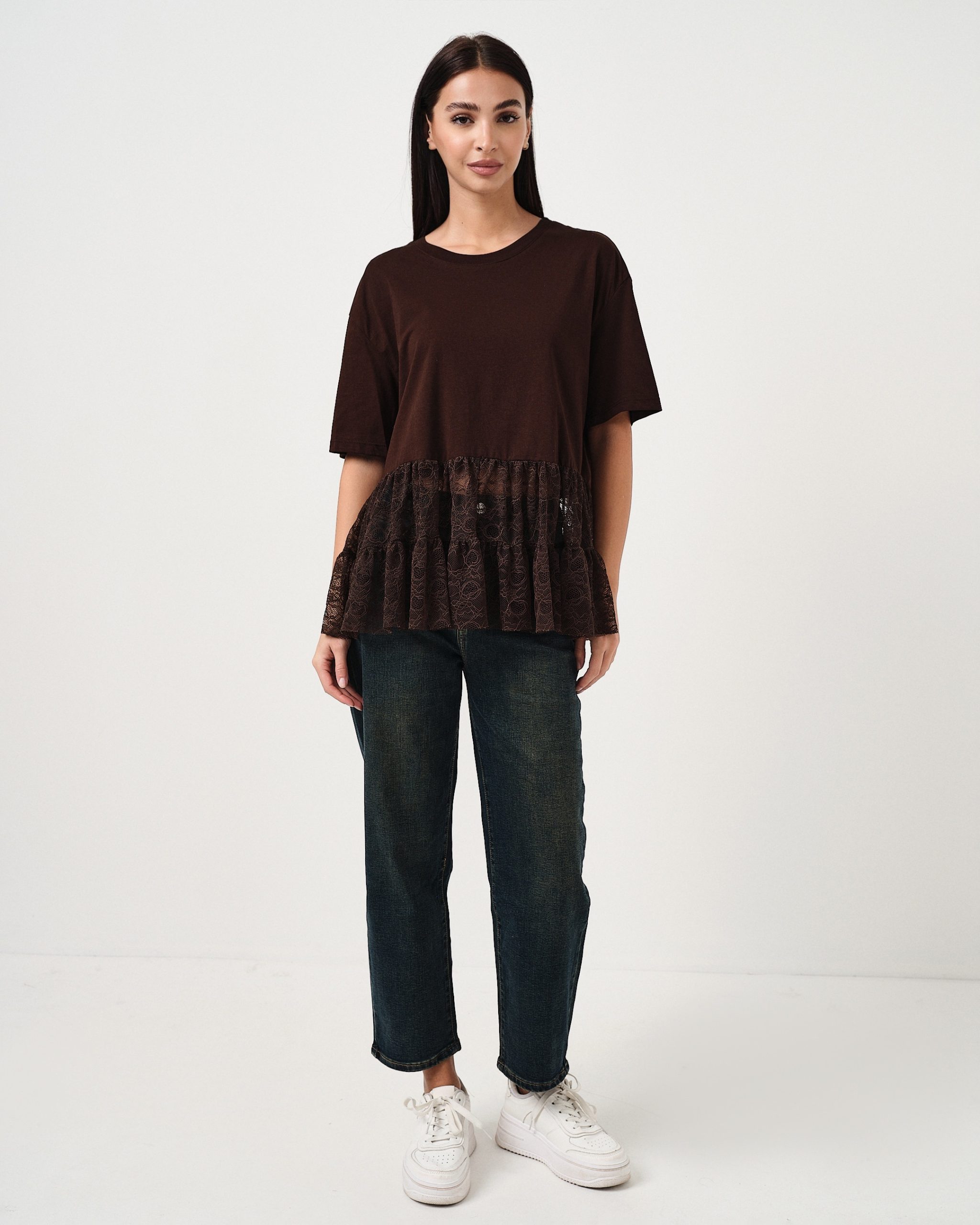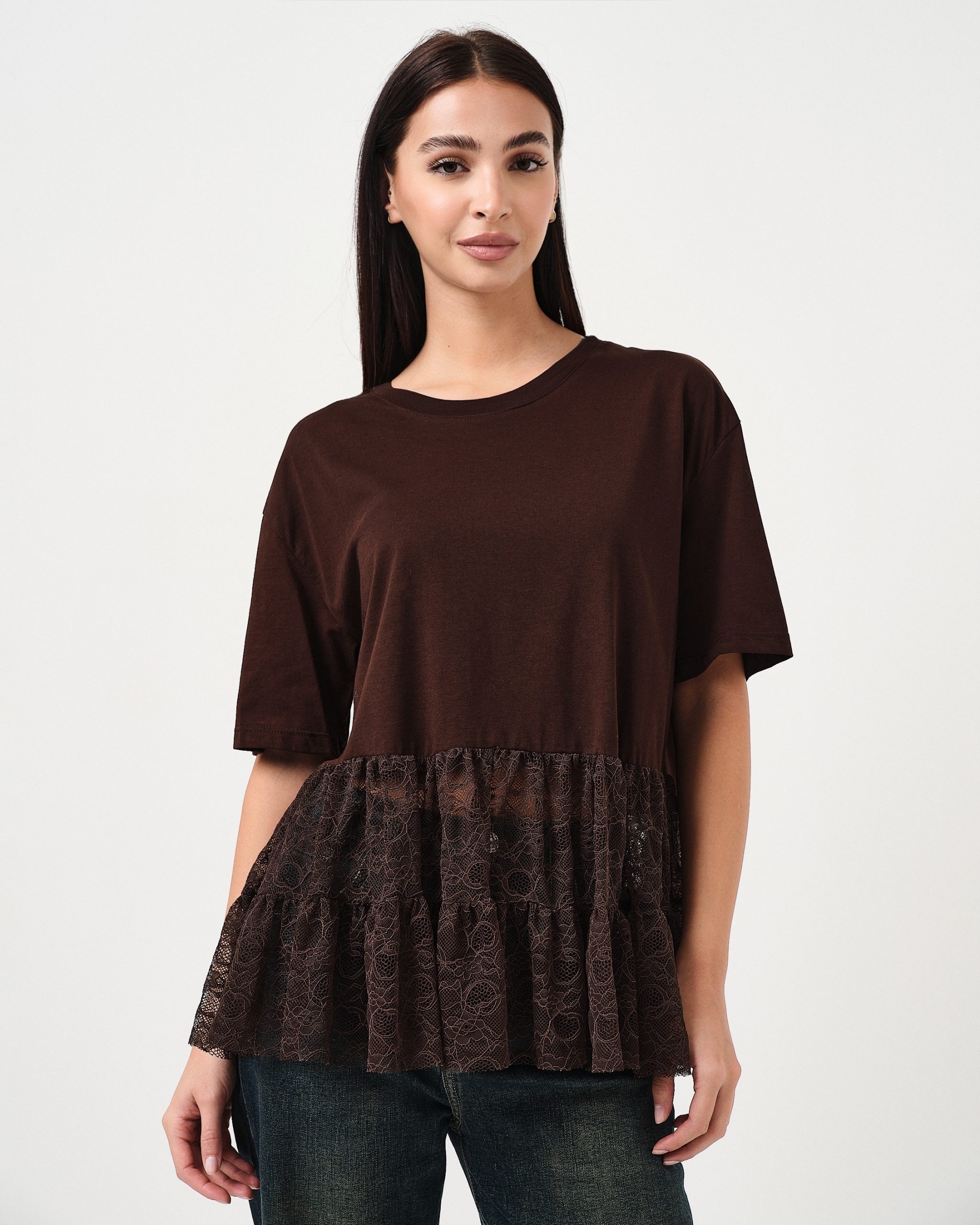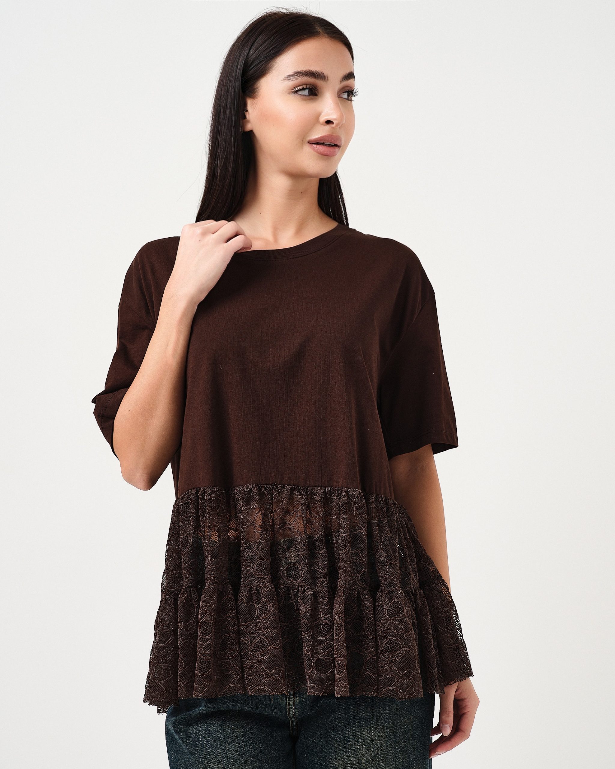 T-shirt oversize con dettaglio della balza in pizzo.