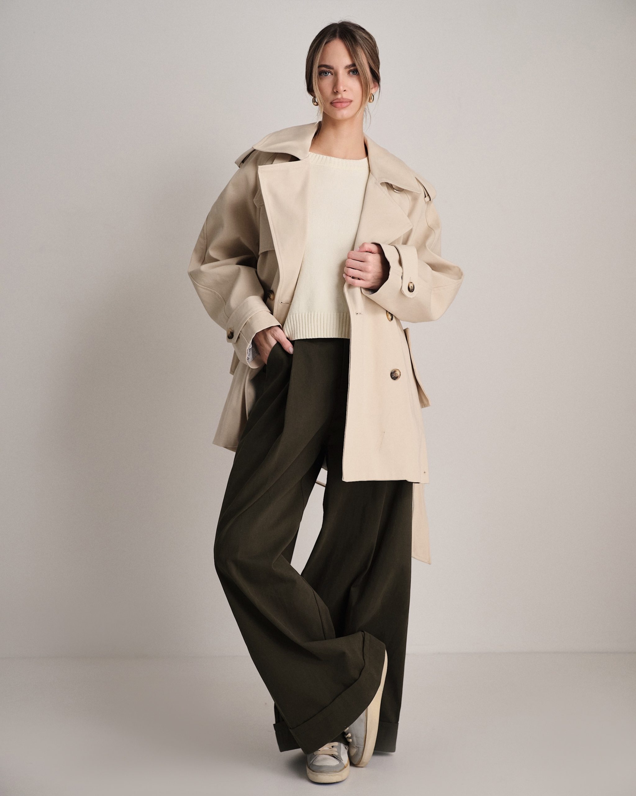 Trench cropped in cotone