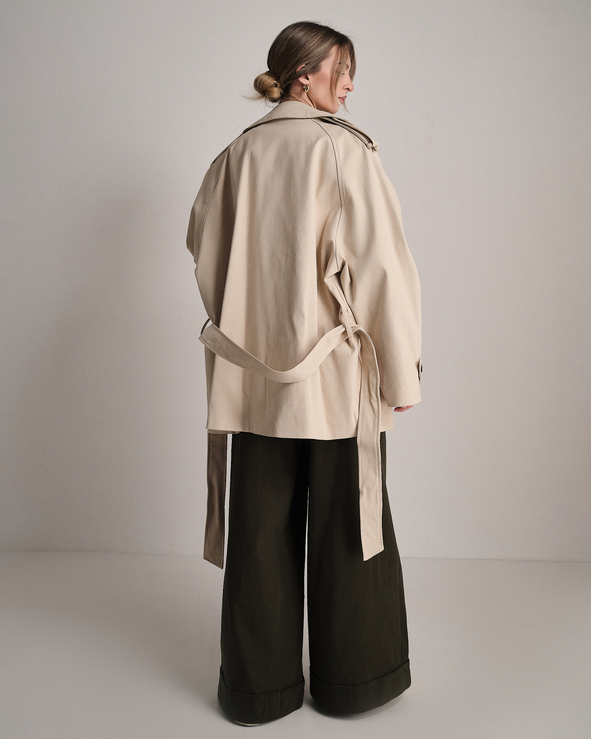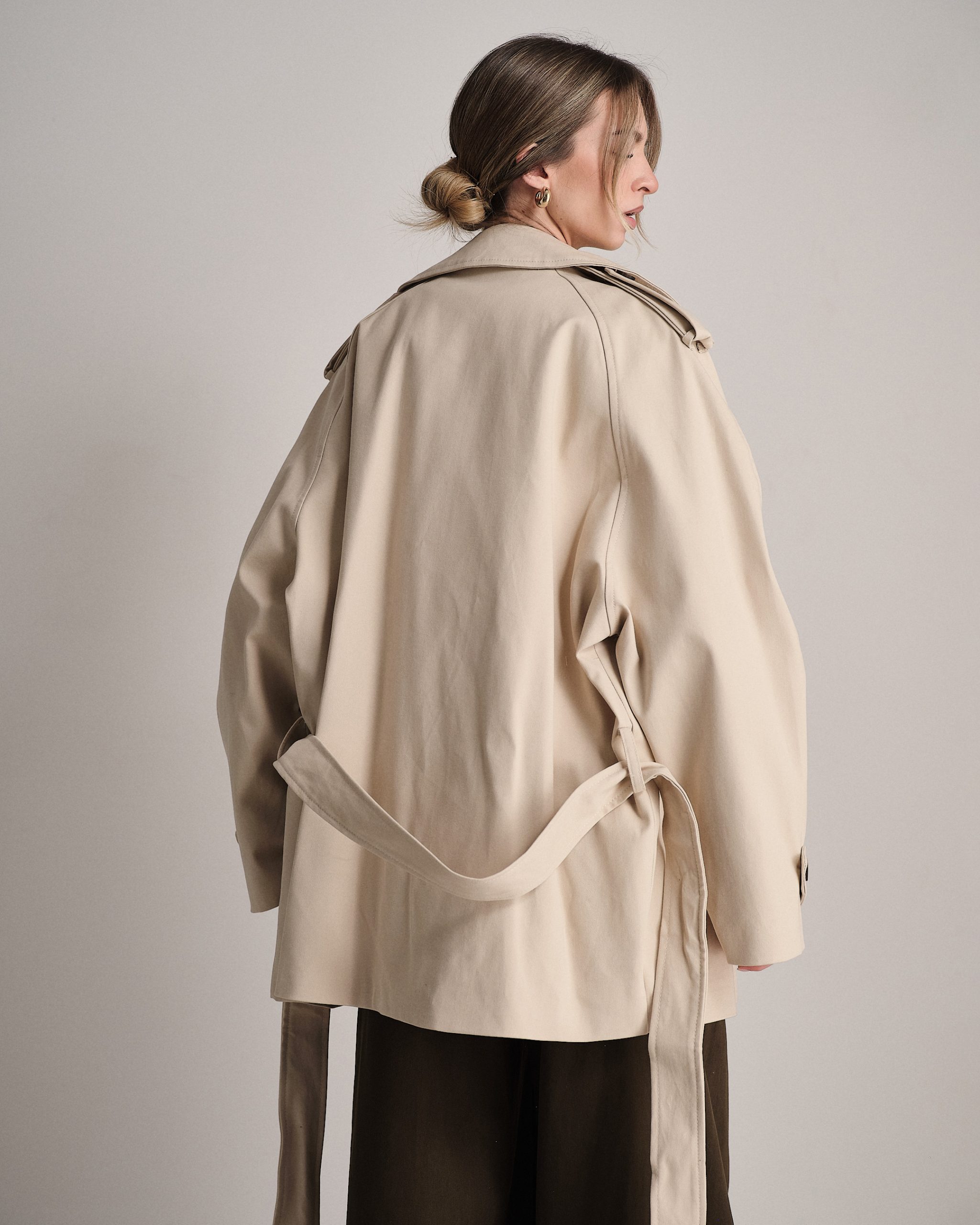 Trench oversize in cotone strutturato con cintura in vita.