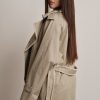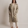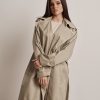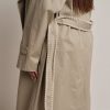 Trench lungo in cotone con cuciture ricamate e cintura in vita.
