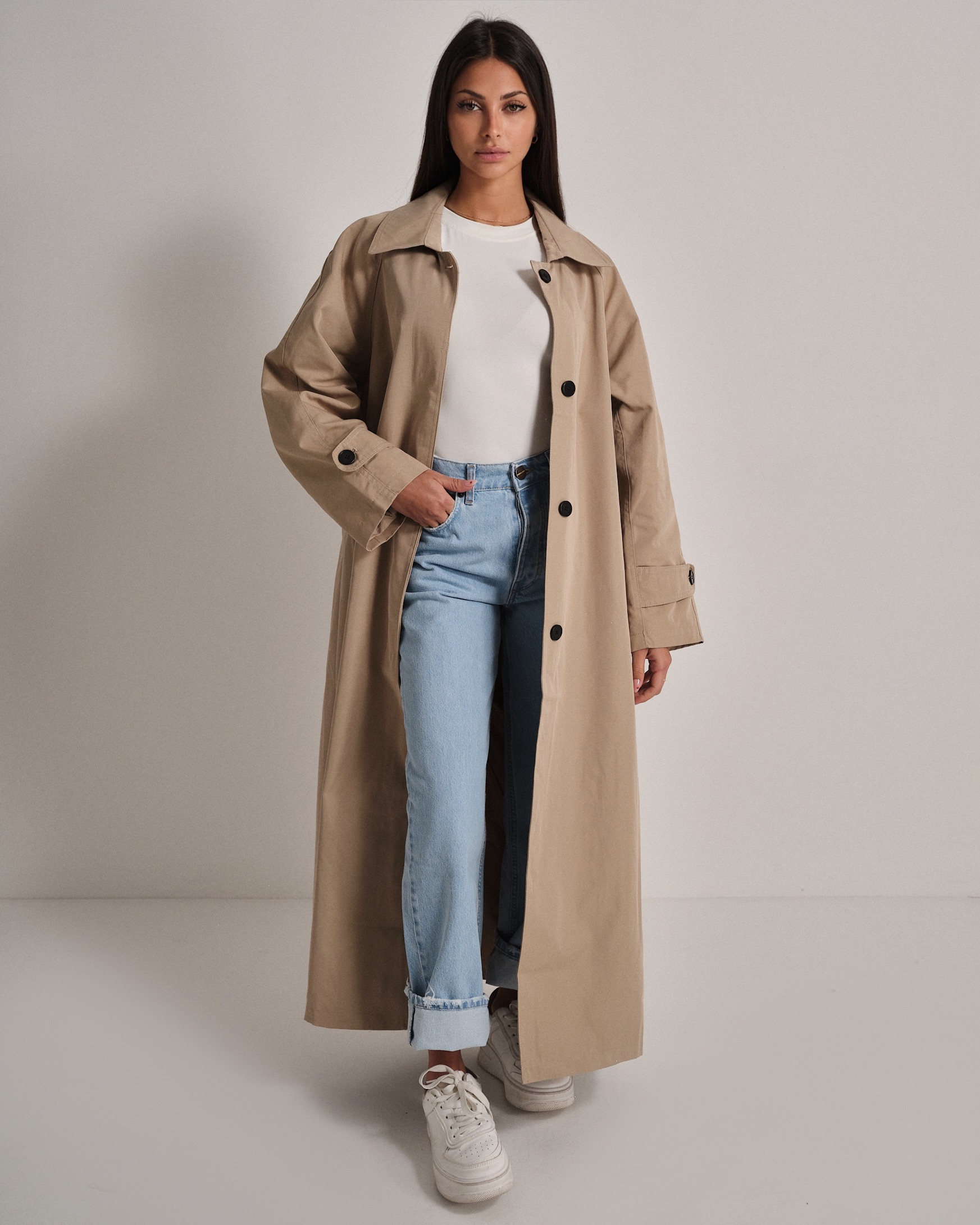 La modella è alta 1,63m e indossa la taglia UNI.
