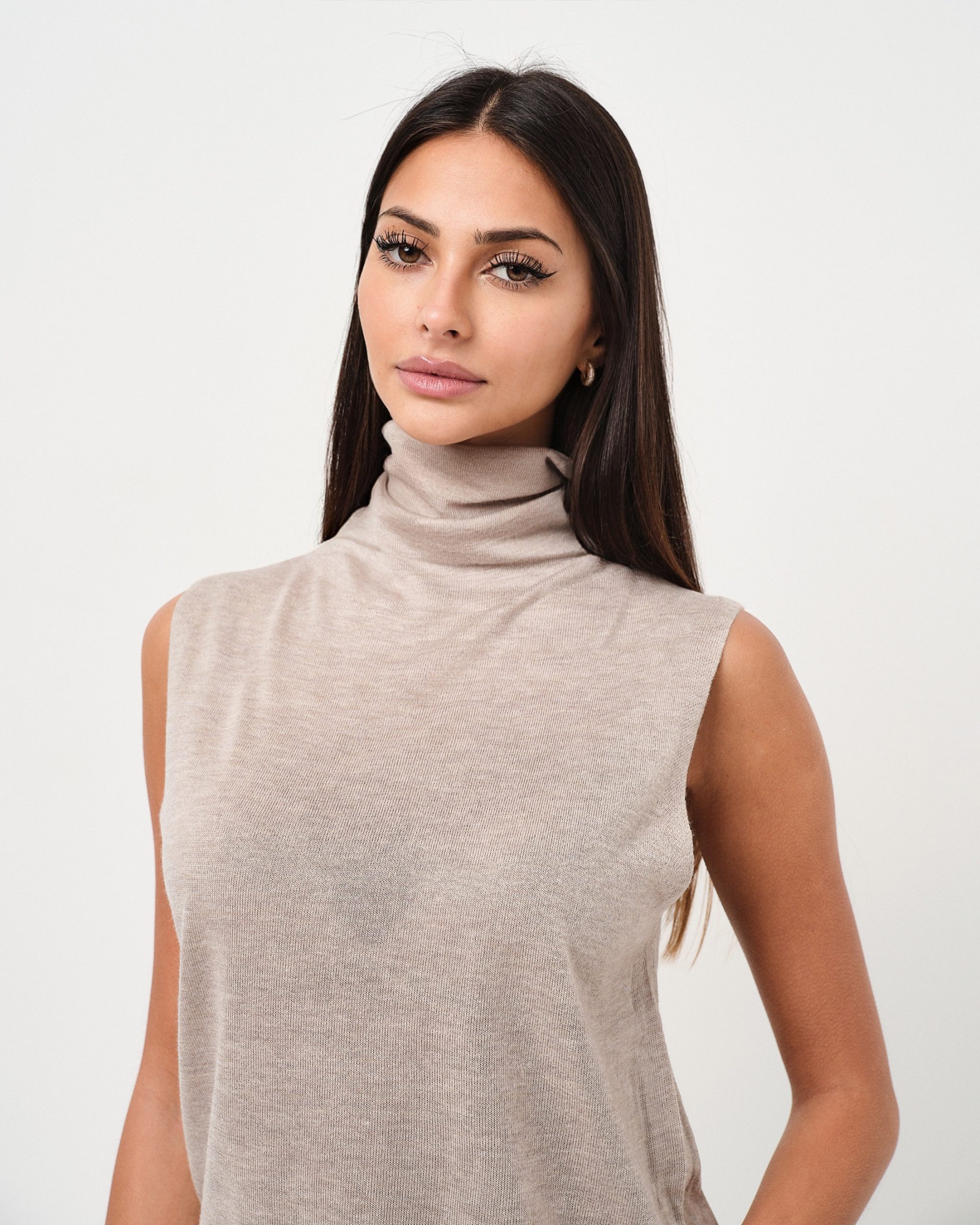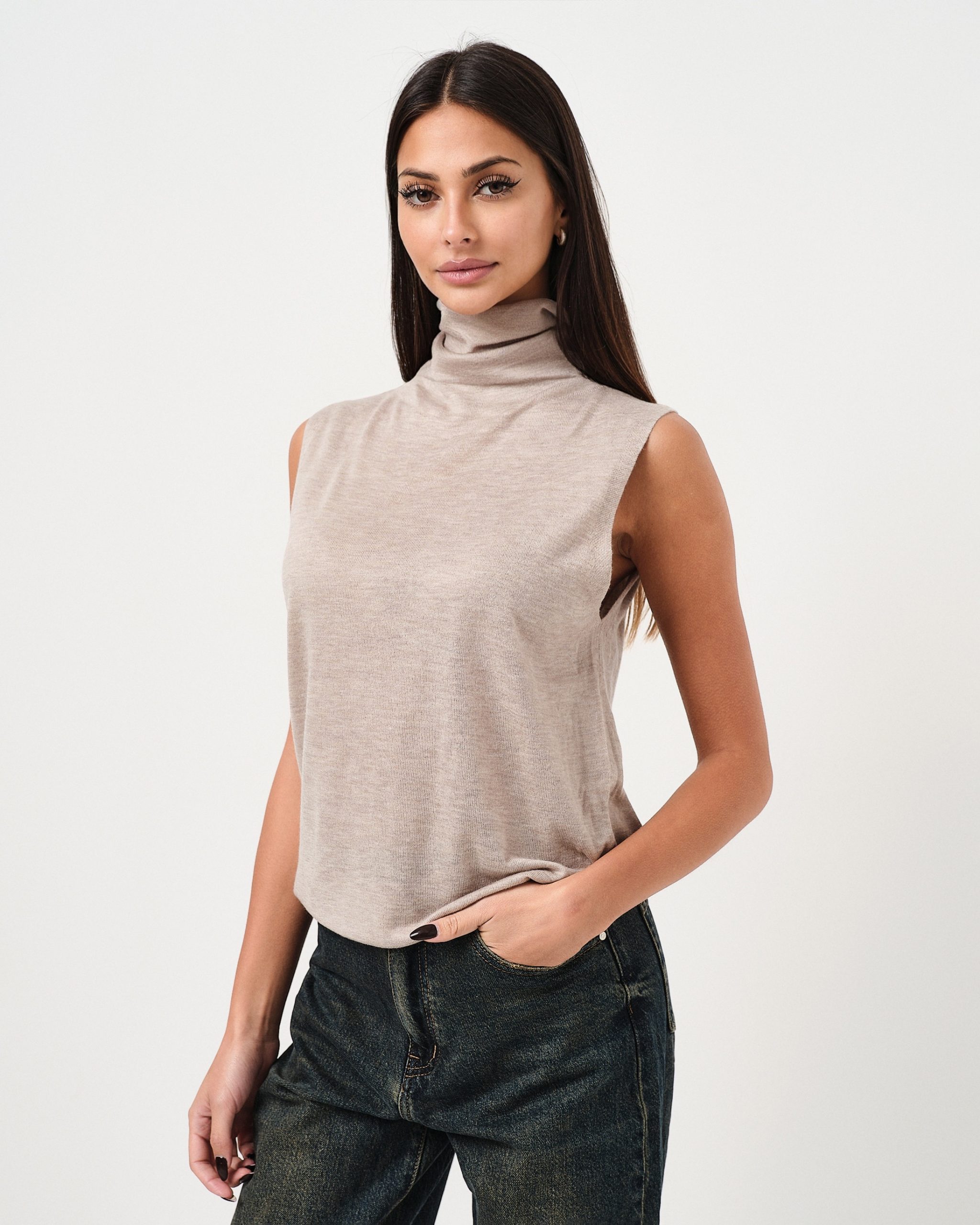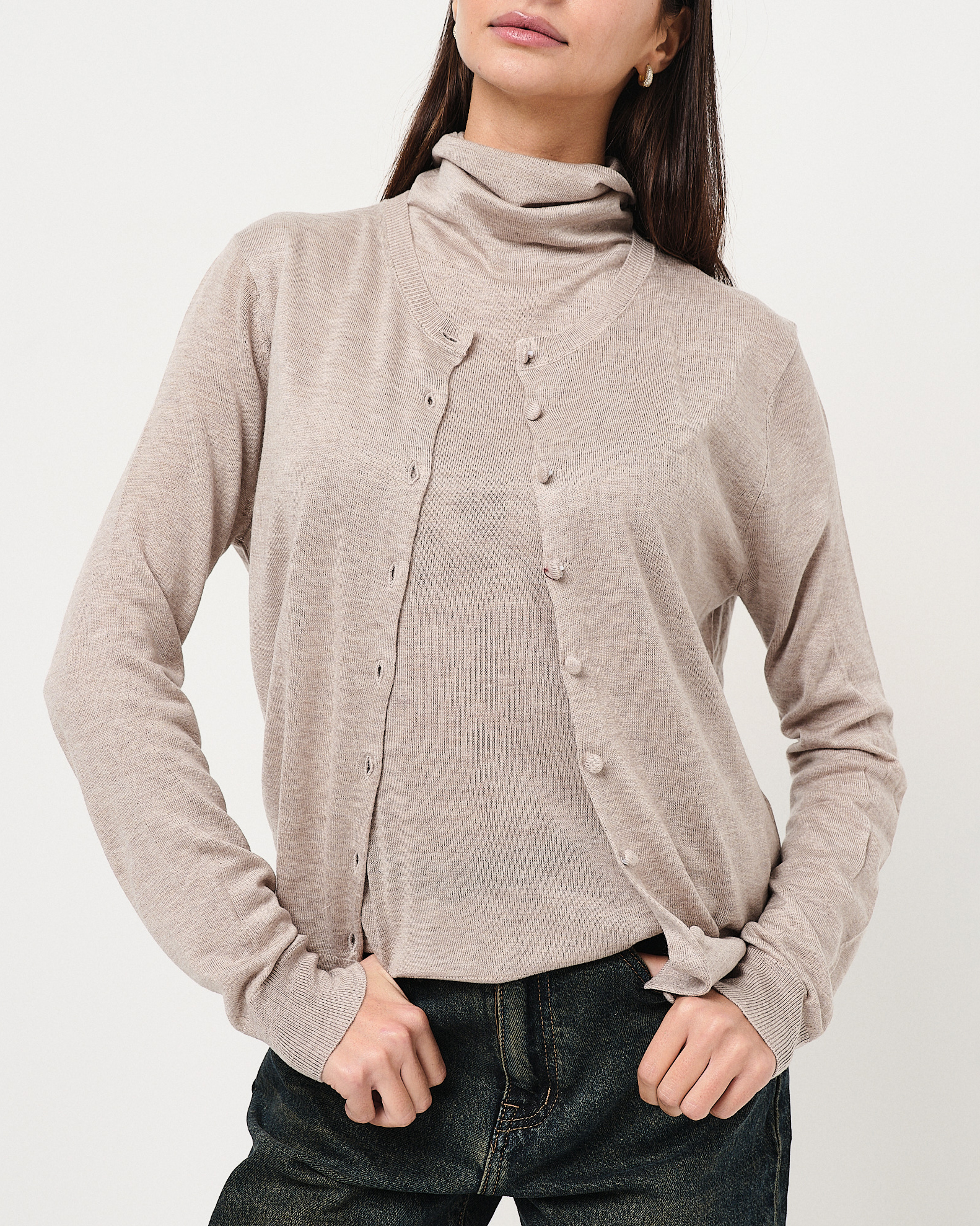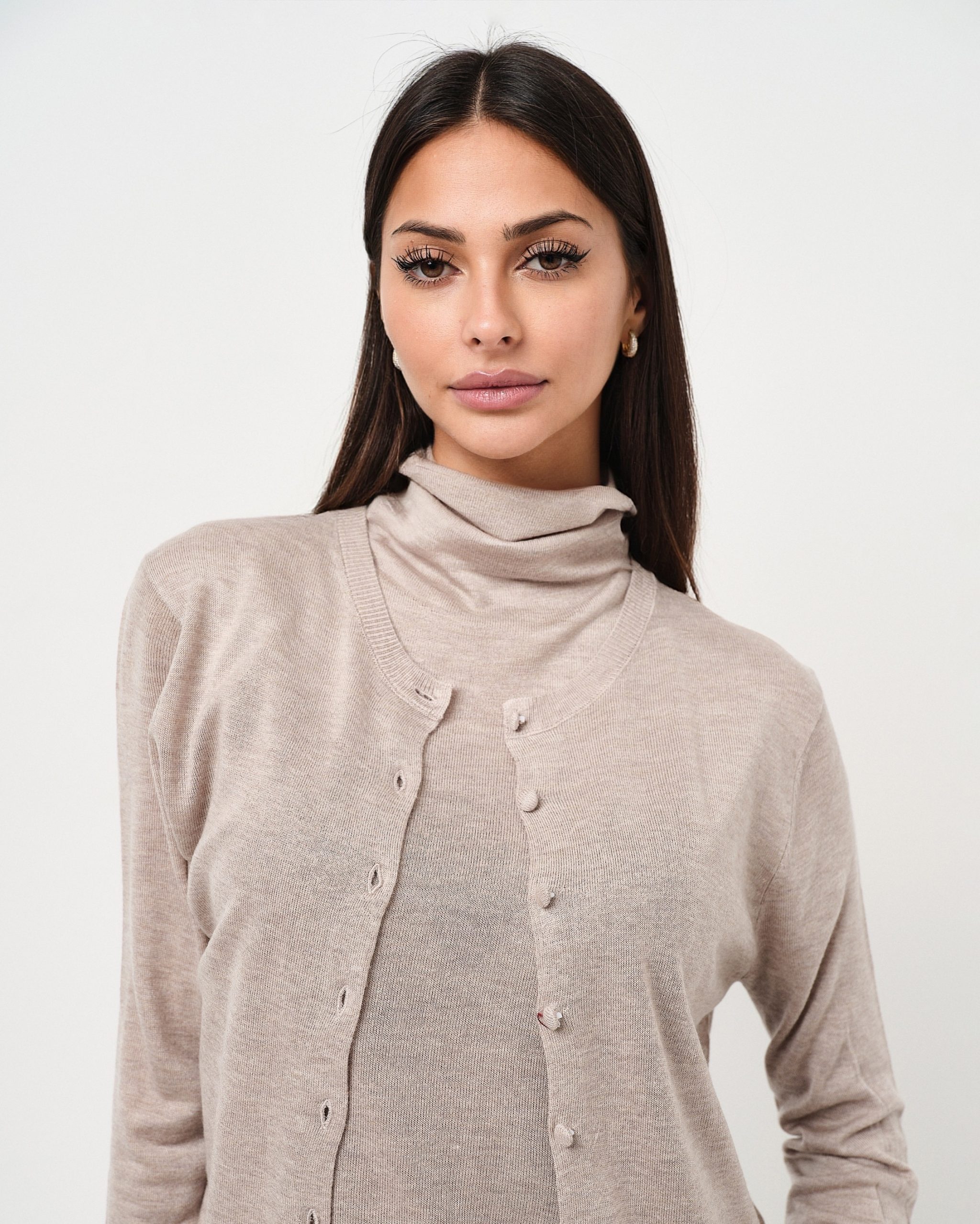 Set composto da canotta con collo alto morbido e cardigan in misto lana.