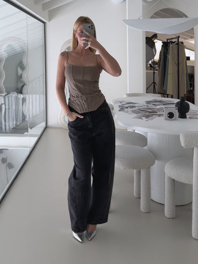 Corpetto lungo in lycra elasticizzata con spalline sottili regolabili.
